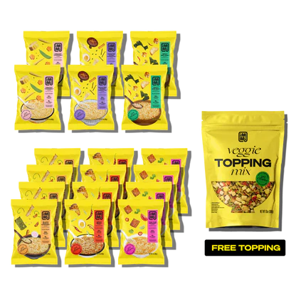 TOM YUM “SHRIMP”: Natural Flavor, Gum Acacia, Onion Powder, Garlic Powder, Soy Sauce Powder (Soybeans, Salt), Shiitake Mushroom Powder, Shallot Powder, Tomato Powder, Coconut Milk, Spices, Medium Chain Triglycerides, Potassium Chloride, Citric Acid, Turmeric (For Color), Paprika Extract (For Color), Calcium Carbonate, Maltodextrin.